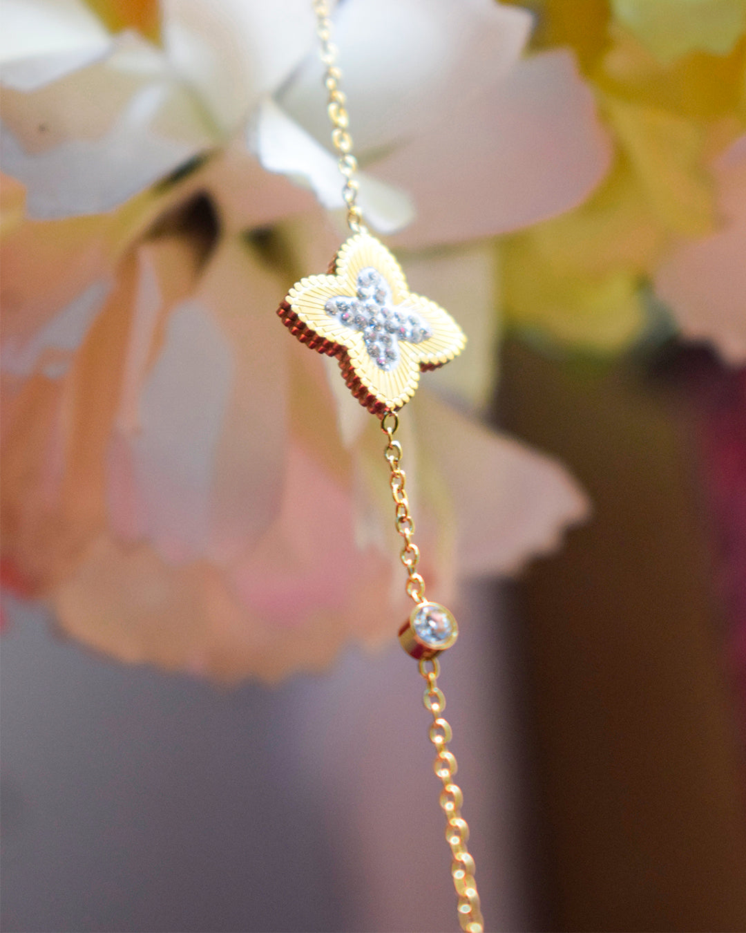 Gold-Tone Floral Charm Bracelet with CZ Stones – Premium Artificial Jewelry